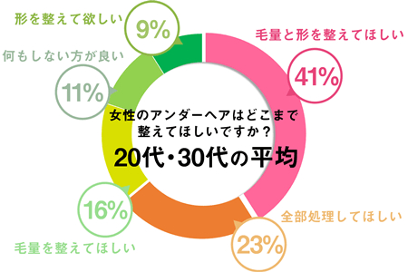 「Q.女性のアンダーヘアはどこまで整えてほしいですか?」という質問を行ったところ、「毛量と形を整えてほしい(41%)」という声が最も多い結果となりました。