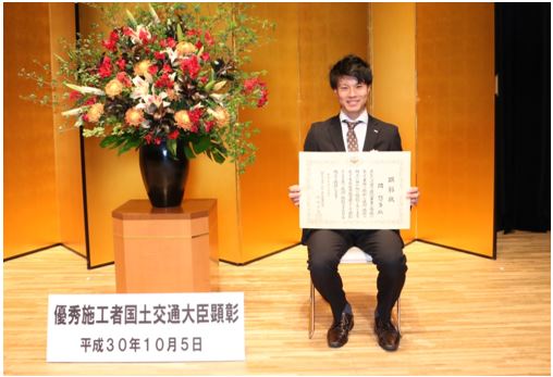 ポラスグループのポラスハウジング協同組合(草加市 代表理事:中内 晃次郎)では、国土交通省主催の優秀施工者国土交通大臣顕彰において、平成30年度『青年優秀施工者土地・建設産業局長顕彰(建設ジュニアマスター)』をポラスハウジング協同組合の隅 悠多(すみ ゆうた)が受賞いたしました。2018年10月5日に執り行われた優秀施工者国土交通大臣顕彰式典では、石井 啓一国土交通大臣、野村 正史土地・建設産業局長ご臨席のもと、建設ジュニアマスター101名及び大工職種11人名の中で最年少の受賞(29歳)となりました。