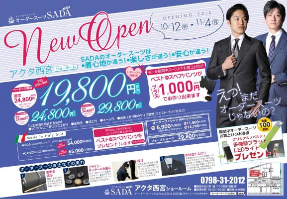 工場直販オーダースーツSADAアクタ西宮SRオープン