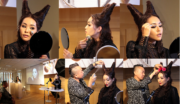 artisのブラシを使ったハーフ顔メイクが完成し、冨沢氏がヘアの仕上げを行うと、シャッターを切る音に包まれ、会場の熱気はピークに!冨沢ノボル氏×マリリン氏のコラボレーション作品が誕生し、会場は大盛況のまま幕を閉じた。
