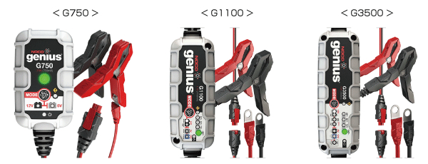 NOCO geniusシリーズ充電器、『G750』『G1100』『G3500』は、アメリカで設計されたタフなデザインに、使用者目線の利便性を兼ね備えた高性能バッテリー充電器です。