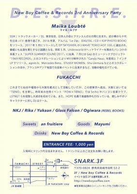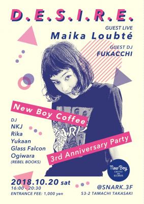 気軽に立ち寄れる群馬県高崎市のコーヒースタンド「New Boy Coffee & Records」は、オープンから3周年を記念して、2018年10月20日(土)にDJイベント「D.E.S.I.R.E.」のスペシャル版(http://newboycoffee.com/press/anniversary.html)を、New Boy Coffee上階のオルタナティブスペース<SNARK.3F>で開催します。