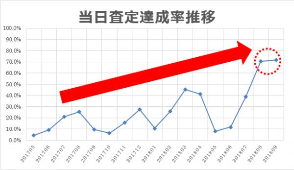 8月より実施している「当日査定チャレンジキャンペーン」は、そのサービスの強みを活かし、品物到着完了メールをお送りしてから24時間以内に査定完了をお知らせする、というサービス品質のPRを目的としています。2018年8月は週間80%(※1)に到達しました。