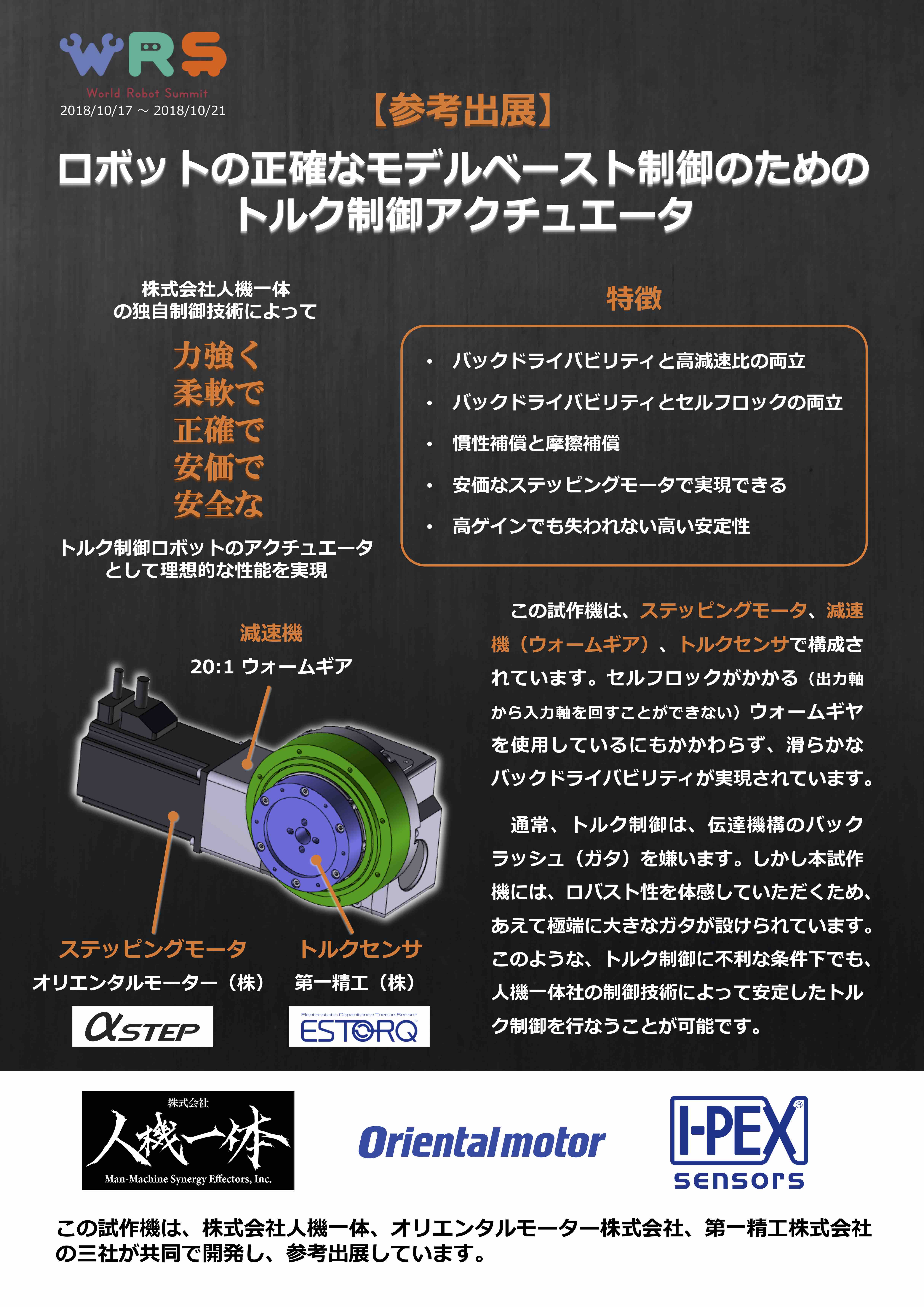 また、人機回転ユニット ver.1.0(初公開)は、オリエンタルモーター株式会社様および第一精工株式会社様との共同開発による参考出展です。