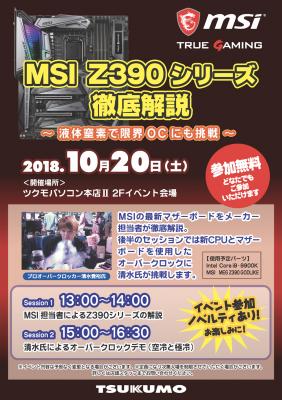 2018年10月18日 - Micro-Star International Co., Ltd. 台湾・新北市 - マザーボードの設計で世界をリードするMicro-Star International(MSI)は、10月20日(土)に東京・秋葉原のツクモパソコン本店II 2Fイベント会場にて、スペシャルイベント「MSI Z390シリーズ徹底解説 ~液体窒素で限界OCにも挑戦」を開催いたします。