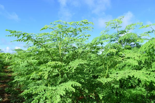 モリンガは、主にインド、東南アジア、アフリカ、南米、沖縄で栽培され、その歴史は古く、インドの民間療法アーユルヴェーダの書物には、300の病気の改善に効果があったと記述があります。ビタミン、ミネラル、アミノ酸、ポリフェノール、ギャバがバランスよく豊富に含まれ、カリウムはバナナ、鉄分はほうれん草より多く含まれています。また、CO2吸収力は、杉の木の2倍と、環境にも優しい植物です。