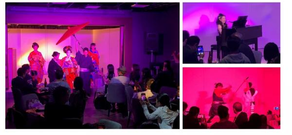 オープン当日は奈良市内のホテル関係者、地域の皆さまを招待した“こけら落としイベント”を開催しました。“こけら落としイベント”では、ジャズ演奏、ダンス・アクロバット・殺陣を融合させた和のエンターテイメントショーや花魁ショーを開催し、奈良の夜を楽しむ新スポットとして、お披露目をしました。