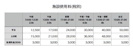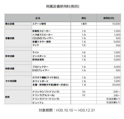※音響設備のご利用・飲食のご利用などがございましたら、お問い合わせのうえで見積もりをご提示いたします。