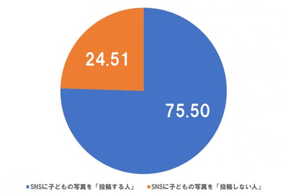 欧米に比べて日本人はプライバシーに対する意識が高くソーシャルな場に子どもの写真を投稿する人の割合が低いのではないかと思う読者の方々にとっては「投稿する人」が75.5%もいる結果に驚かれるのではないでしょうか。現代のママパパにとって子どもの日々の生活シーンをソーシャルに公開することはそれほど抵抗のないことなのかもしれません。また、SNSには自分が承認した人にだけ投稿を公開する仕組みもあるので信頼度の高い顔見知りの人にだけプライベートを公開しているということも考えられます。