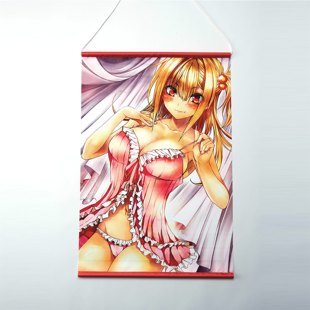 ▲ヒロイン「天翔優利」のベビードール姿のイラストを使用したB2タペストリー。煽情的なイラストの美麗タペストリーを是非ご自宅にお迎えください。