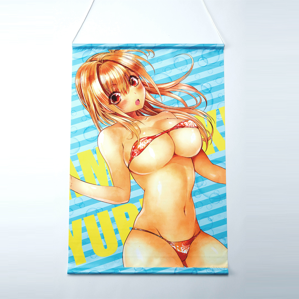 ▲同じく、ヒロイン「天翔優利」の水着イラストを使用したタペストリー。きわどい水着イラストを美麗なタペストリーとして再現しております。