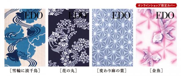 今年で発売から9年目となる「江戸帖」は、「江戸の美意識と暮らす粋な毎日」がコンセプト。カバーには天保13年創業の染呉服の老舗「竺仙」の浴衣の柄を使用し、お客さまの人気投票で決定した「雪輪に波千鳥」「変わり麻の葉」「花の丸」「金魚(オンラインショップ限定)」の計4柄を販売いたします。