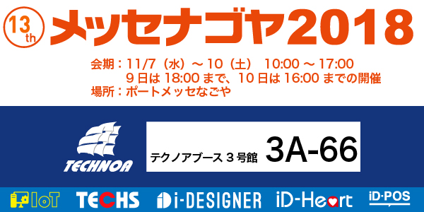株式会社テクノアは、11月7日(水)~ 11月10日(土)の4日間、ポートメッセなごやで開催される、日本最大級 異業種交流展示会「メッセナゴヤ2018」に出展いたします。