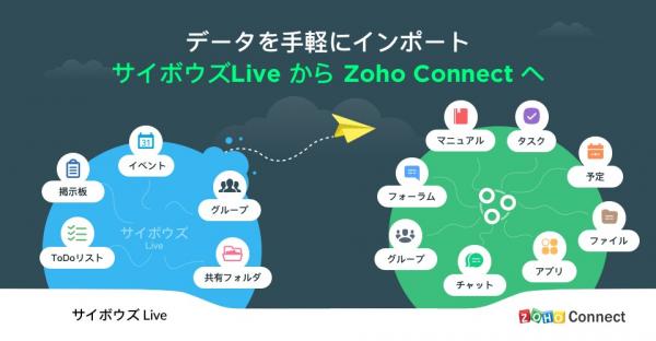 ゾーホージャパン株式会社(代表取締役:迫 洋一郎、本社:神奈川県横浜市、以下、当社)は、2019年4月15日にサービス提供を終了する「サイボウズLive」のデータを、当社が提供するクラウド型グループウェア「Zoho Connect」に移行できる新機能「サイボウズLiveデータのインポート機能」を、本日2018年10月24日(水)から無料で提供を開始します。