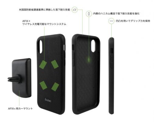 様々なマテリアルを研究開発、また供給し続けているEvutecは、これまでにも数多くのiPhoneケースを発表してきました。素材だけでなく、AFIX+と名付けられた独自のマウントシステムも開発し、素材と機能面を両軸から取り組むメーカーとしてアメリカでは認知されております。全てのケースにマグネットを搭載し、付属品のマウントシステムが同梱されています。マウントを使用することでスタンドやカーマウントとしてご使用いただけると同時に、マグネット搭載ケースとしては画期的なワイヤレス充電も可能です。