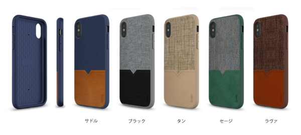 MILスペックに準拠した耐衝撃ケースで、ファブリックと本革の二つの素材を用いてクラシカルにデザインされ、ハンドスティッチにて完成させたケースです。上述のAERGOと同様、ケース内側はハニカム構造にて衝撃吸収力を強化。サイドはTPU素材でグリップ力を上げ、持ちやすさを追求し、ディテールまでこだわったケースです。カラートレンドにマッチした配色にて5色(サドル、ブラック、タン、セージ、ラヴァ)、対応機種はiPhone XS、iPhone XS MAX、iPhone XRにて展開いたします。
