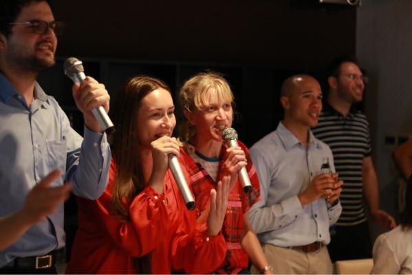 ほとんどのゲストは“KARAOKE”という言葉は知っていても、体験するのは初めてです。スタッフの手引きや盛り上げで、いつの間にか初対面のゲスト同士が一緒にステージに上がってデュエットやダンスを楽しみ始めます。安価で安全な東京のナイトライフを紹介する場としてゲストに支持され、半年間続いているイベントです。