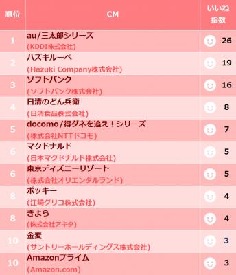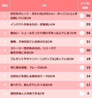 「Twitterでつぶやきたいと思うCMTOP10」