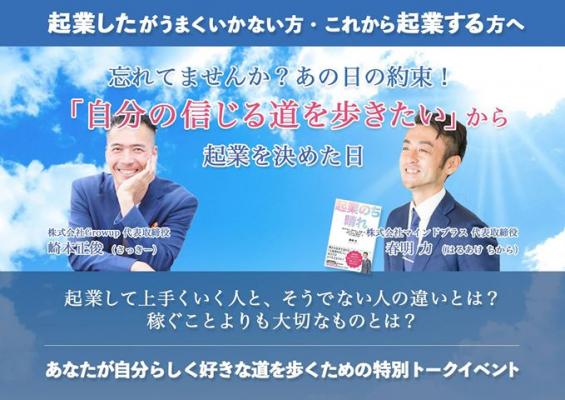 全国的に活躍する崎本正俊氏と、起業のち晴れの著者の春明力氏とのトークライブを12月22日(土)に