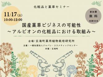 ジャパン・コスメティックセンターは、化粧品と薬草セミナー「国産薬草ビジネスの可能性~アルビオンの化粧品における取組み~」を開催します。