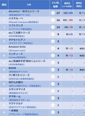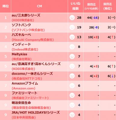 2018年10月下旬CMいいね指数アンケート