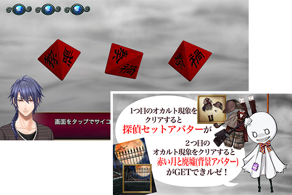 (3)クリアすると、ボーナスとして『赤い月と廃墟(背景)』『探偵セット』のアバターを、それぞれシナリオ中のミニゲームの出現箇所で獲得出来ます。
