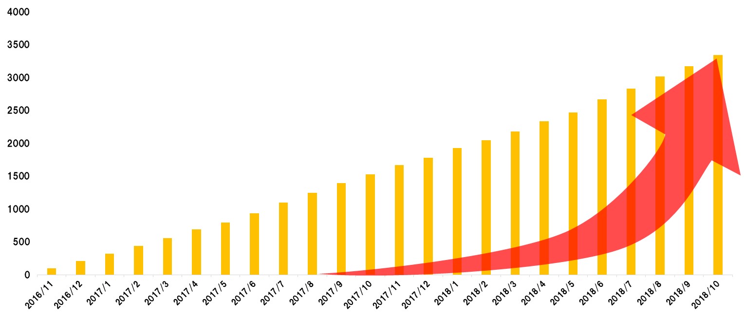 ■累積登録会員数の月推移(2018年10月31日現在)