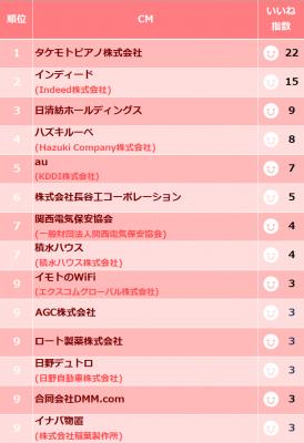 アンケートは2018年10月25日~2018年10月26日までの期間で、「社名・商品名を覚えたCM」をテーマにアンケートを実施し、結果をランキング形式にてまとめたものです。