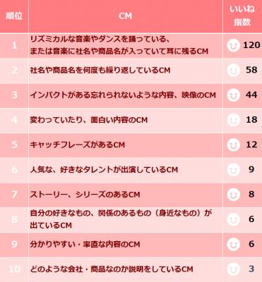 「社名や商品名を覚えてしまうと思うCMイメージランキングTOP10」