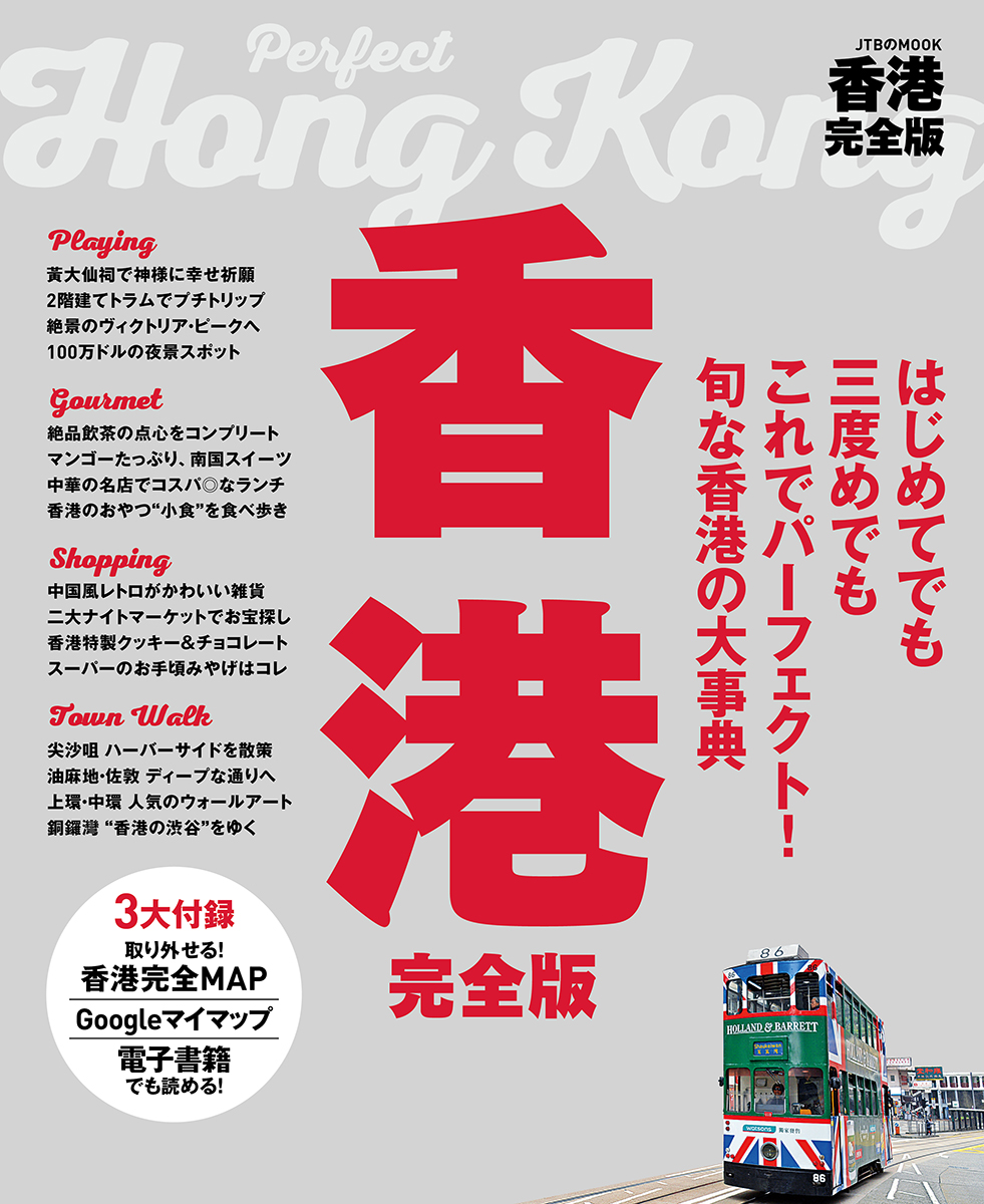 “はじめてでも、三度めでも、これでパーフェクト!”な豊富な情報量と、大判写真を使った美しい誌面が人気の完全版シリーズです。『ハワイ完全版』、『台湾完全版』の続刊となる本誌では、絶品飲茶や100万ドルの夜景といった香港の定番はもちろん、インスタスポットとして話題のウォールアートやリノベスポット、最新のデザイン雑貨まで、香港の新旧の魅力を、余すところなく紹介します。