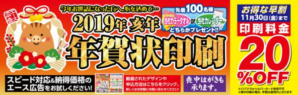お世話になった皆様へのご挨拶、2019年の年賀状は是非エース広告まで。