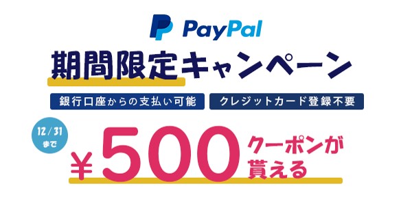 キャンペーン対象期間中にセカイモンではじめて「PayPal」を利用して1点以上お買い物をしていただいた方に、セカイモンで使える500円クーポンをプレゼントいたします。※過去セカイモンで一度もPayPalを利用されていない方も、全員ご利用頂けます。対象条件を満たした方、先着5000名様にセカイモンからクーポン情報付きのメールをご登録メールアドレス宛にお送りします。