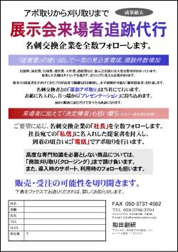 オプションで、名刺交換企業の「社長」を全数フォローします。社長宛ての「私信」に名入れした提案書を封入し、到着の頃合いに「電話」でアポ取りを行います。
