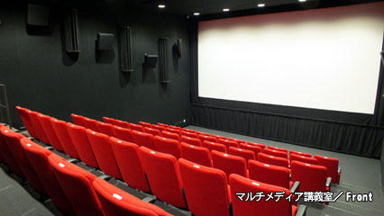 東京工芸大学・中野キャンパス・シアター(マルチメディア講義室)は、日本の映画会社の試写室とおなじクオリティレベルのミニシアターとして作られたものです。Dolby5.1chサラウンドで、フィルム上映とデジタルシネマ上映とに対応しています。また『マイブリッジシアター』は、次世代立体音響システムAuro11.1を採用した大型シアターで4KのDLPプロジェクターを備えたデジタルシネマ専用施設です。