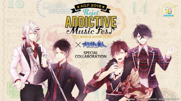 「Rejet Addictive Music Fes♪」は、2018年11月10日(土)・11日(日)に池袋で開催された「アニメイトガールズフェスティバル(AGF)2018」内で、Rejetが「DIABOLIK LOVERS」、「ピタゴラスプロダクション」、「ディア▼ヴォーカリスト」(「▼」はハートマーク、以下同様)の3作品にフィーチャーして実施したイベントです。
