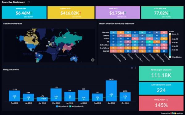 「Zoho Analytics 4.0」は、データの融合とAI機能を搭載しました。また、営業、マーケティング、サポート、人事、財務などの多岐に渡るアプリケーションを提供するZohoの各分野での重要指標への知見を活かし、企業の意思決定に役立つダッシュボードを用意しました。これにより、企業は部門間をわたる大量のビジネスデータを効率的に分析、迅速な意思決定が可能になります。