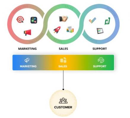 ● 企業は、営業やサポートのいずれの会話であろうと、社内の複数の部門にまたがる問題を簡単に解決できます。