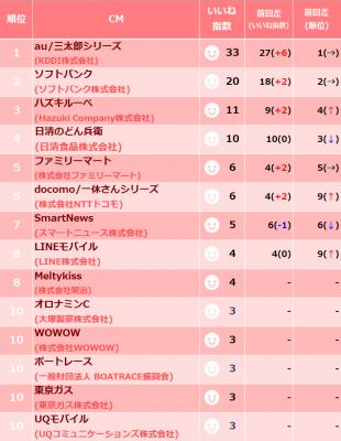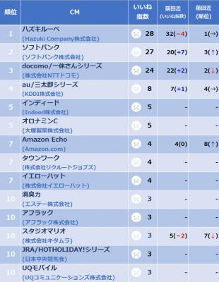 2018年11月上旬CMいいね指数アンケート