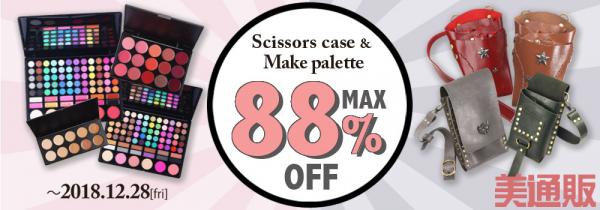 プロ向け美容材料の通信販売サイト「美通販」が、「最大88%OFF!シザーケース&メイクパレットセール」を開催いたします。他では買えないグッドデザイン&高機能の「シザーケース」と、豊富なカラーバリエーションで人気の高い「メイクパレット」を厳選し、最大88%OFFという業界最安値を目指した特別価格でご提供させていただきます。キャンペーンは2018年12月28日(金)まで開催いたしますので、この機会に多くのサロン様のお役に立てればと考えております。