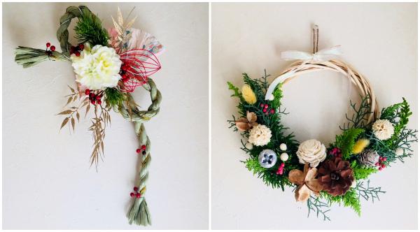 「フレッシュグリーンで作るクリスマスリース 」「ダリアのしめ飾り」と、クリスマスシーズンやお正月のインテリアを手作りで彩る2種類からお選びいただけます。