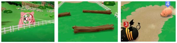 様々な見た目をした「くりぷトン」6匹が、プレイヤーの手を借りて障害物を乗り越えながらゴールを目指すレースです。障害物ではプレイヤーが応援(操作)することで、「くりぷトン」が障害物をうまく飛び越えたり、少しだけスピードアップします。