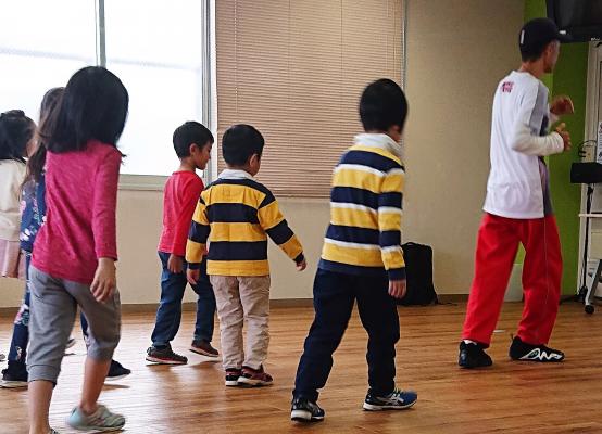 当日は、年長生~小1生の児童とその保護者が参加し、児童向けに70分のダンスレッスン体験イベントを行いました。