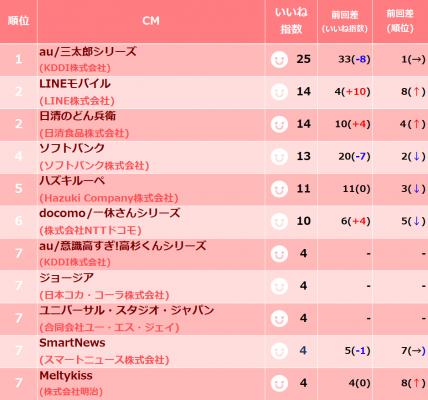 2018年11月中旬CMいいね指数アンケート