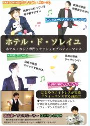 いよいよカジノ法案が通り、日本でカジノ・ホテルなどのIRリゾート施設ができるという事になっていますが、専門のフラッシュモブパフォーマンス集団「ホテル・ド・ソレイユ」が2018年11月10日に結成し、11月22日に日本のパフォーマー専門のタレント会社(株)RPGエンターテイメントに加入しました。「ホテル・ド・ソレイユ」はカジノ・ホテルなどの施設を中心に様々な施設で、店員やウエイトレスになりすまして突然音楽が流れパフォーマンス(マジック・ジャグリング・パントマイム・サウンドパフォーマンス)が行われます。フラッシュモブ的に行うこのパフォーマンスはダンスなどでは有名でしたがパフォーマンスを中心に結成されるのは日本で初めてのチームです。