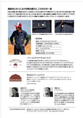 株式会社ファームステッド(本社:北海道帯広市、代表取締役:長岡淳一・阿部岳、以下「弊社」)が手がけるアパレルブランド「ファームステッドアパレル」はこのたび2019年3月中旬頃に、一次産業に従事する農業者の方々の声を反映させたオリジナルデニムオールインワンを発売します。