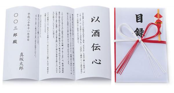 その日本酒「ゆく年くる年」に込められたコンセプト、物語に沿った目録メッセージと共に、今年の感謝の気持ちを贈ります。