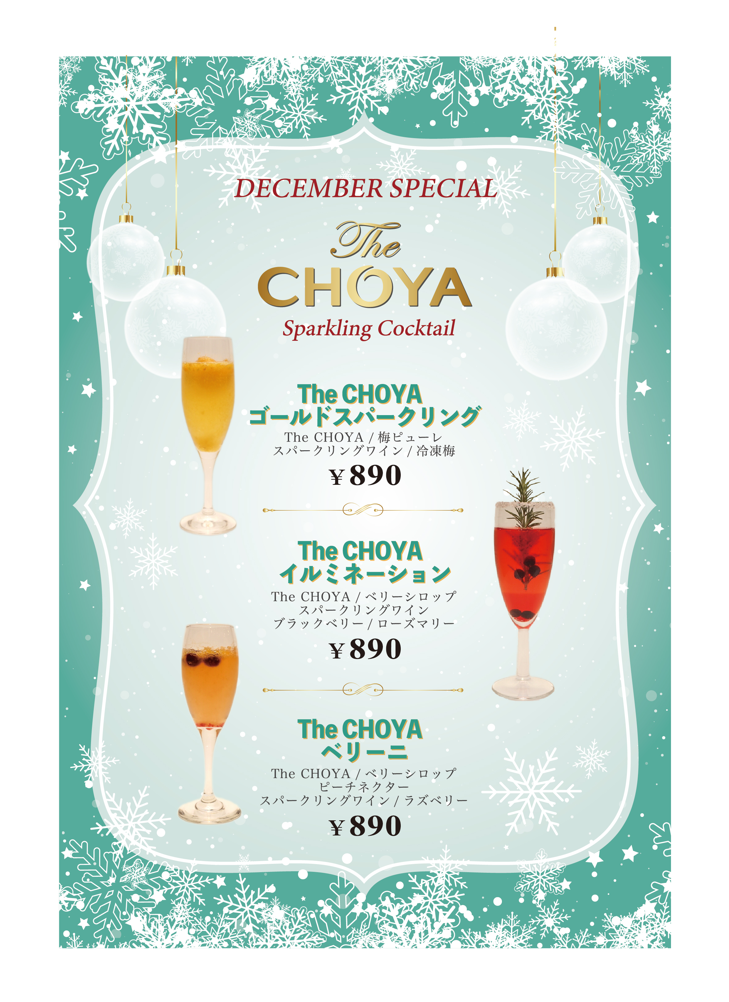 ■ 12月限定 The CHOYA BAR オリジナルスパークリングカクテルメニュー