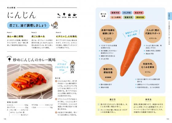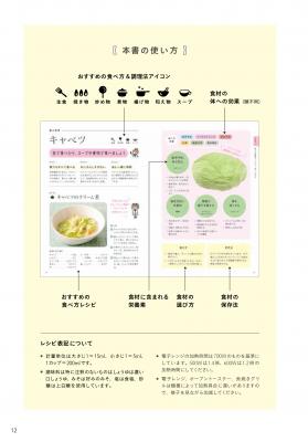 本書では写真とイラストをオールカラーでふんだんに使い、旬を意識して栄養素をムダなく摂取する方法のほか、体の不調に必要な栄養素、調理法と食材の相性を余すところなく解説しています。