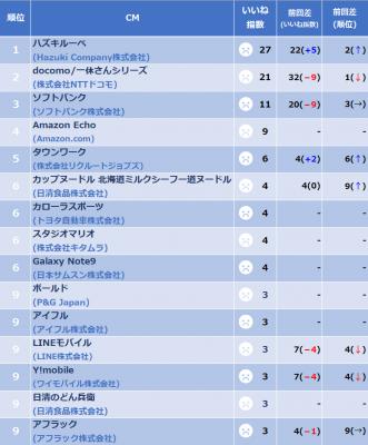 2018年11月下旬CMいいね指数アンケート
