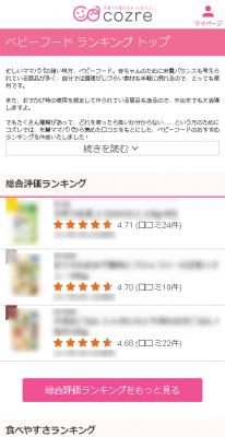 子育てに楽しさと新たな価値を提供する株式会社コズレ(本社:東京都千代田区、代表取締役:田中 穣二郎、以下コズレ)は、子育てナレッジシェアメディア「cozreマガジン」に「ベビーフード 口コミランキング(β版)」を本日リリースしました。